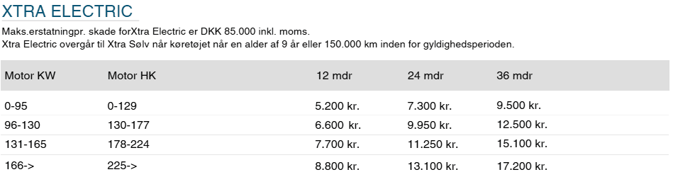 Den mest dækkende pakke, som gælder el- og hybridbiler. Dækker stort set alle elektriske og mekaniske komponenter på bilen herunder også multimedie. Kan suppleres med batteridækning.